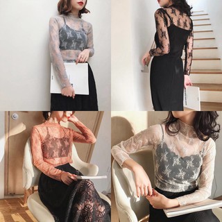 Áo Croptop Tay Dài Phối Lưới In Họa Tiết Hoa Phong Cách Cổ Điển Thời Trang Cho Nữ