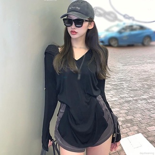 Áo Croptop Áo Thun Dài Tay Cổ Tròn Giả Hai Lớp Màu Sắc Dành Cho Nữ Áo Thun Tay Dài