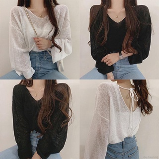 Áo Len Tay Dài Cổ Chữ V Hở Lưng Màu Trơn Thời Trang Mùa Thu Cho Nữ