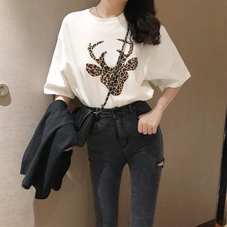 Áo thun tay ngắn cổ tròn họa tiết sừng hươu đáng yêu
