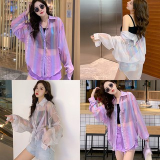 Áo Sơ Mi Chiffon Màu Trơn Dáng Rộng Chống Nắng Thời Trang Mùa Hè Cho Nữ