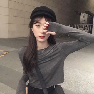 Áo tay dài màu trơn thiết kế khoét vai quyến rũ