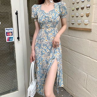 Đầm Cổ Vuông Ôm Dáng Xẻ Tà Quyến Rũ Thời Trang Phong Cách Hàn Quốc Cho Nữ