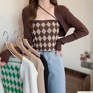 Áo hai dây và áo khoác cardigan dệt kim phong cách mùa thu cho nữ