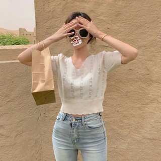 Áo Thun Croptop Dệt Kim Tay Ngắn Cổ Vuông Dáng Ôm Phong Cách Hàn Quốc Cho Nữ