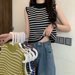 Áo Khoác Dệt Kim Không Tay Kẻ Sọc Phong Cách Cổ Điển Hàn