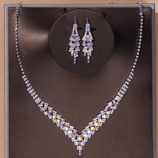 Bộ Vòng cổ Và Bông Tai Đính Đá Kim Cương Siêu Lấp Lánh Toàn Bộ Cho Cô Dâu