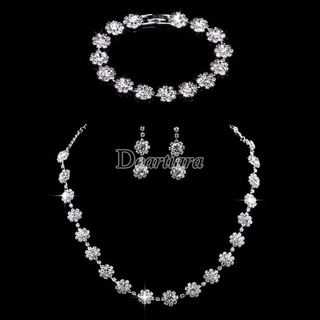 Bộ Trang Sức 3 Món Họa Tiết Hoa Đính Kim Cương Nhân Tạo Thời Trang