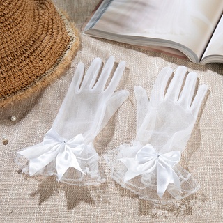 Găng tay cô dâu phối nơ ren trắng hợp thời trang thanh lịch