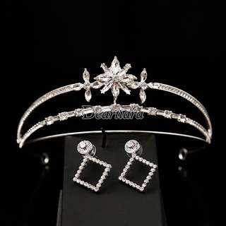Bộ vương miện và khuyên tai đính đá thiết kế đơn giản thời trang dành cho cô dâu