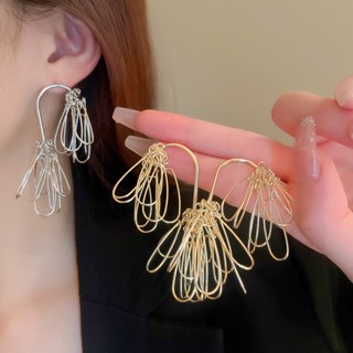 Bông Tai Kim Loại Hình Oval / Tròn Phối Tua Rua Phong Cách Hàn Quốc