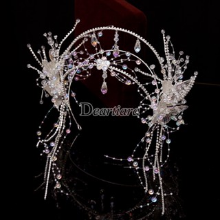 Băng Đô Cài Tóc Hình Vương Miện Đính Pha Lê Có Tua Rua Cho Cô Dâu