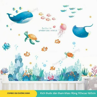 [COMBO] Decal dán tường đại dương xanh, Tranh dán tường cho bé trang trí phòng, nhà tắm, Sticker dán tường Hàn Quốc