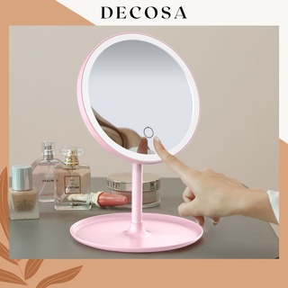 Gương đèn led trang điểm để bàn cảm ứng 3 màu pin sạc DECOSA