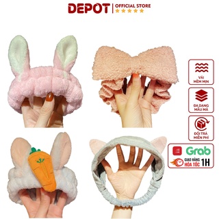 Băng đô rửa mặt dễ thương, turban cài tóc cute tai thỏ vải nhung bông dày mịn
