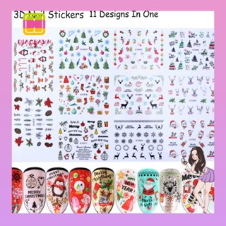 1 Set 11 Loại Sticker Dán Móng Tay 3D Chủ Đề Giáng Sinh