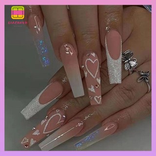 DIACHAVN Set 24 Móng Tay Giả Họa Tiết Trái Tim Thu Đông Ấn Tượng