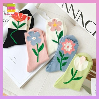 DIACHAVN Set 2 Đôi Vớ Cổ Vừa In Họa Tiết Hoa Hoạt Hình Màu Kẹo Ngọt Thoáng Khí Thời Trang Cho Nữ