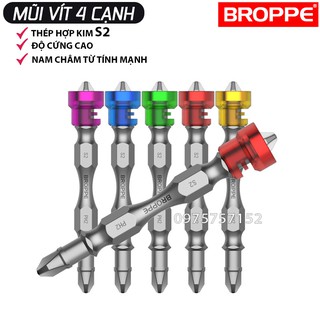 Mũi vít 4 cạnh có nam châm trợ lực PH2 dài 65mm BROPPE, đầu mũi bắn vít Bake có vòng giới hạn nam châm siêu hít