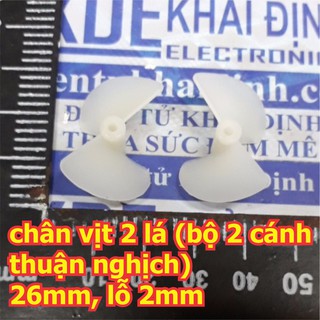 4 cái chân vịt tàu thủy mô hình 2 lá, 2 cánh màu trắng nhựa cứng ( 2 thuận, 2 nghịch) 26mm, lỗ trục 2mm kde5495