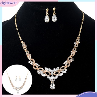 Bộ trang sức đính đá hình giọt nước hợp thời trang gồm dây chuyền mặt hình số 8 rỗng và bông tai
