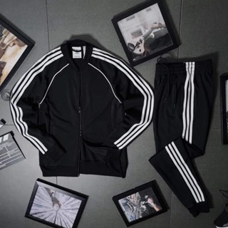 Bộ quần áo thể thao nam nữ, bộ bomber nỉ nam kẻ sọc có khóa kéo chất vải poly mềm mịn cao cấp