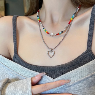 Vòng cổ Hai Lớp Chuỗi Hạt Nhiều Màu Hình Mặt Cười Phong Cách Hip Hop Dành Cho Nữ