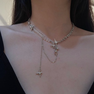 Vòng cổ hợp kim chuỗi hạt trong suốt phối tua rua đính ngôi sao cá tính