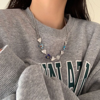 Vòng cổ Đính Hạt Ngọc Trai Màu Xanh Dương Phong Cách Retro Đường Phố Thời Trang