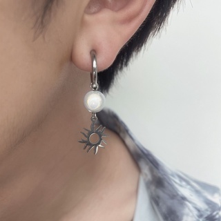 Khuyên tai bằng titan đính ngọc trai giả phong cách hip hop đường phố thời trang cá tính