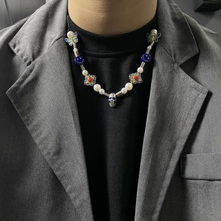 Vòng cổ nhiều lớp đính ngọc trai nhân tạo phong cách hiphop hợp thời trang