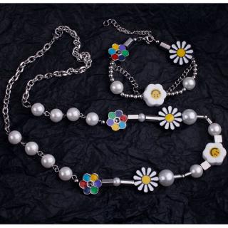 Vòng cổ trang trí ngọc trai và khối nhựa hình hoa dễ thương cho nữ