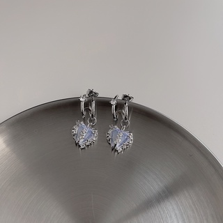 Khuyên Tai Hình Trái Tim Đính Đá Zircon Phong Cách hip hop Sang Trọng Thời Trang Hàn Quốc
