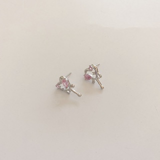 Khuyên Tai Hình Trái Tim Đính Đá Zircon Hồng Hợp Thời Trang Dễ Phối Đồ