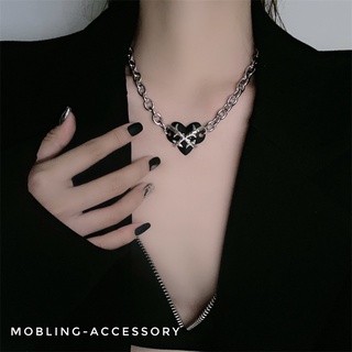Vòng cổ dạng chuỗi mặt hình trái tim màu đen phong cách hiphop cổ điển cho nữ