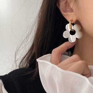 Bông tai kim loại hình hoa màu tương phản phong cách Âu Mỹ thời trang cho nữ