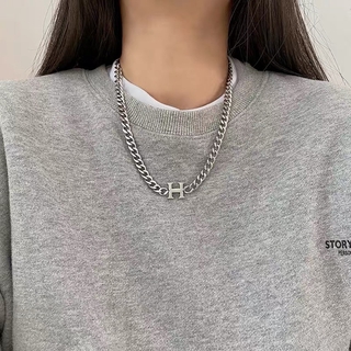 Dây chuyền kim loại thép titan mặt chữ H phong cách hip hop đơn giản thời trang cá tính