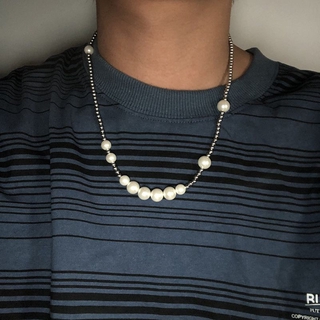 Vòng cổ Thép Titan Đính Ngọc Trai Phong Cách hip hop Đường Phố Cho Nam Và Nữ