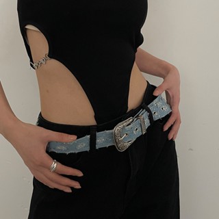 Thắt Lưng Denim Khóa Kim Loại Phong Cách Retro Hàn Quốc Thời Trang Mùa Hè Cho Nữ
