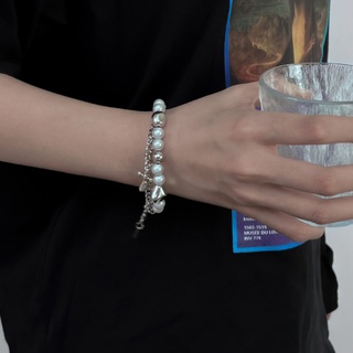 Vòng Tay Hai Lớp Đính Hạt Ngọc Trai Phản Quang Phong Cách Hip Hop Hàn Quốc
