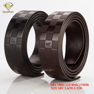 [Dây Tăng/Trơn]-Thắt Lưng Nam Da Bò (Không Mặt Khóa) Size 3.6cm/3.7cm , Vân Caro, Dây Nịt Da Thật 1 Lớp 100% (DLKK-07)