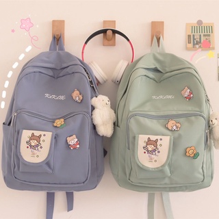 Ba Lô Vải Màu Trơn Họa Tiết Hoạt Hình Dễ Thương Phong Cách Hàn Quốc Cho Nữ