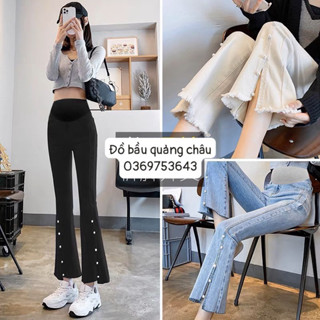 🤰quần jean bầu ống loe dáng dài-hàng quảng châu( sẵn hàng giao ngay)