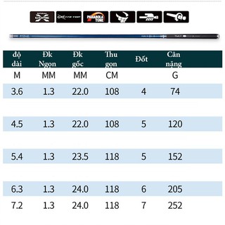 Cần câu tay 5h dạ nguyệt carbon cao cấp độ dài từ 3m6 đến 6m3