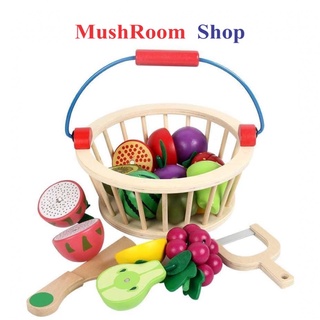 Bộ Đồ Chơi Cắt Rau Củ Quả Và Giỏ Đựng Bằng Gỗ Cao Cấp Cho Bé