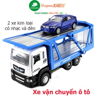 Đồ chơi xe vận chuyển ô tô gồm 2 xe bằng hợp kim có nhạc và đèn - màu xanh