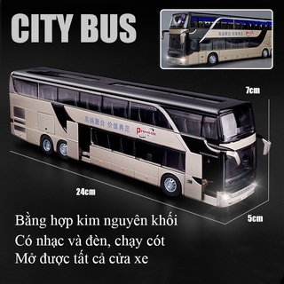 Mô hình xe bus 2 tầng đường dài chở khách bằng hợp kim có nhạc và đèn mở được tất cả cánh cửa