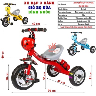 Xe Đạp 3 Bánh Có Bình Nước Cho Bé (Nhiều màu)