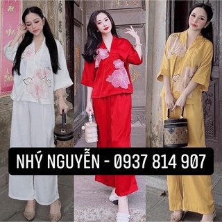 SET ĐỒ LAM ĐI CHÙA THÊU HOA NỔI VẢI LỤA