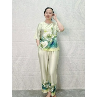 Đồ bộ mặc nhà lụa Tơ Tầm tay ngắn, quần ống rộng, dài 9 tấc, đồ mặc nhà trung niên size lớn từ 50 - 75 kg L11